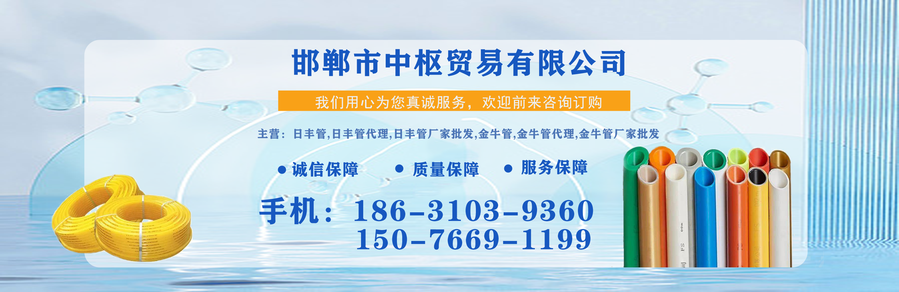 邯鄲市中樞貿(mào)易有限公司主營(yíng)日豐管,日豐管代理,日豐管廠家批發(fā),金牛管,金牛管代理,金牛管廠家批發(fā)等,質(zhì)量可靠,值得信賴!  我公司在產(chǎn)品行業(yè)積累了豐富的經(jīng)驗(yàn),具有嚴(yán)格的管理制度,同時(shí)引進(jìn)先進(jìn)的生產(chǎn)設(shè)備和生產(chǎn)技術(shù),一如既往的為廣大客戶提供質(zhì)優(yōu)價(jià)廉的產(chǎn)品。創(chuàng)辦多年來在市場(chǎng)上贏得較好的口碑,銷售網(wǎng)絡(luò)覆蓋全國(guó)各個(gè)省市及地區(qū)。  質(zhì)量為先,信譽(yù)為重,管理為本,服務(wù)為誠(chéng),我們將致力于這一經(jīng)營(yíng)理念,關(guān)注時(shí)代發(fā)展,用先進(jìn)的技術(shù),不斷創(chuàng)新求實(shí),以更優(yōu)的質(zhì)量,更好的服務(wù)來滿足我們的廣大客戶。  公司理念:勇于進(jìn)取、開拓創(chuàng)...